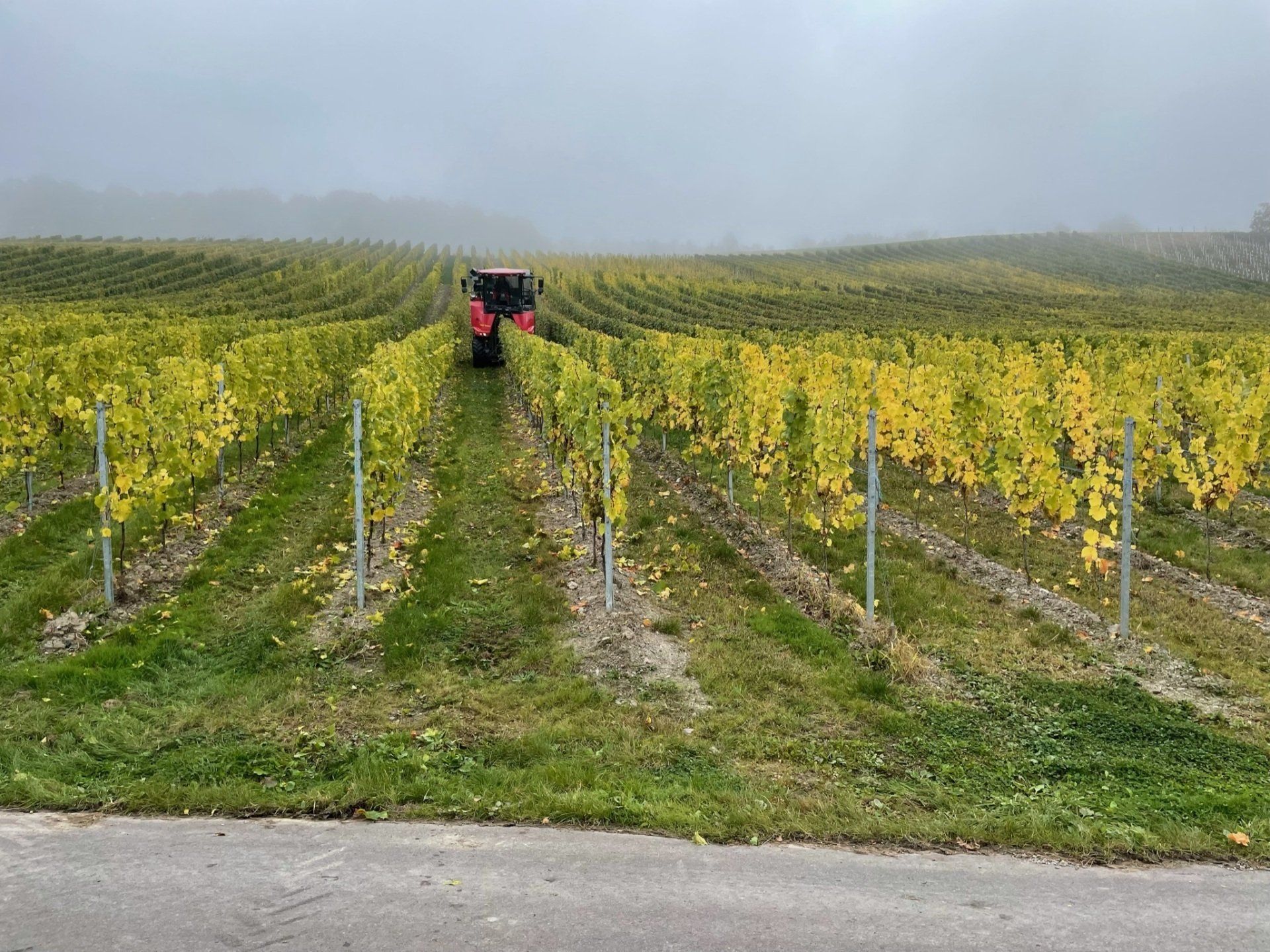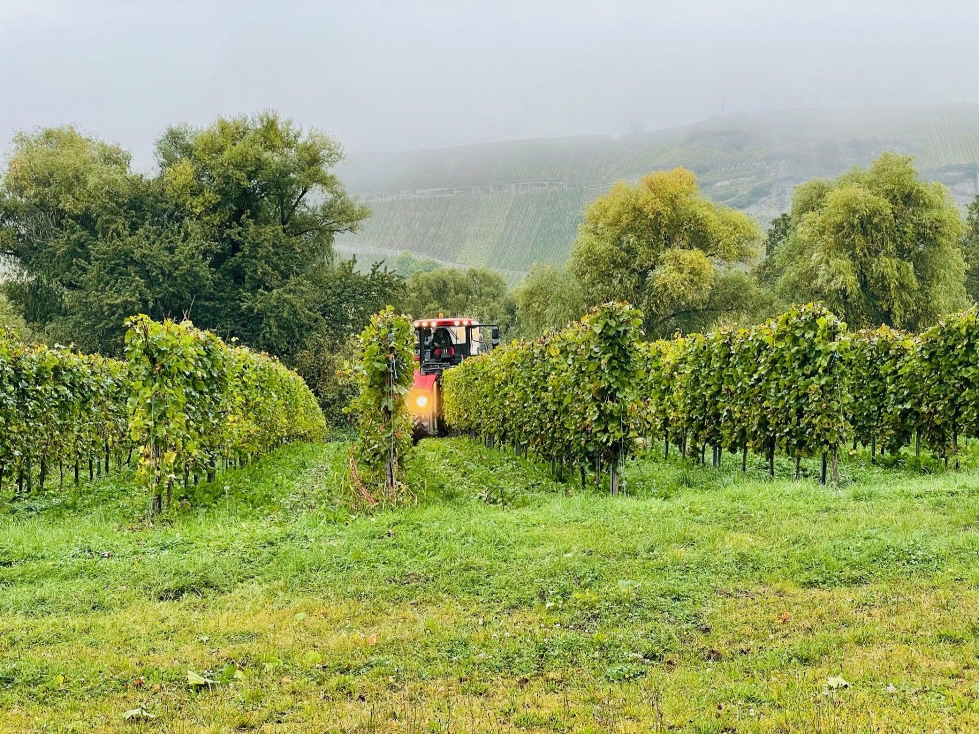 Hauptsorge im Sommer waren hier die pilzlichen Krankheiten. Insbesondere der falsche Mehltau hatte perfekte Bedingungen und volles Potenzial zum Totalschaden. Nur durch zielgerichtetes und vorbeugende Pflanzenschutzmaßnahmen war dieses Worst-Case-Szenario zu verhindern. Dabei hilft nicht nur ein umweltbewusster Pflanzenschutz, sondern auch direkte Arbeiten an den Reben: Um hier ein schnelleres Abtrocknen nach Niederschlägen zu erreichen, entfernen wir im Bereich der Trauben einen Teil der Weinblätter und sorgen für einen niedrigen Bewuchs unter der Rebe. Hierbei haben wir in den vergangenen Jahren in verschiedene Maschinen investiert um einen Bodenbewirtschaftung ohne Einsatz von Herbiziden zu ermöglichen. Ein bewusster und schonender Einsatz von Pflanzenschutzmittel mit dem Ziel die ökologische Vielfalt zu fördern ist hierbei unser Grundgedanke. Dabei lassen wir uns jedoch nicht zertifizieren, um mit irgendeinem Siegel die Werbetrommel zu rühren. Für uns gehört es zum Selbstverständnis unsere gesunden Böden und lebendige Weinberge auch für zukünftige Generationen zu erhalten.