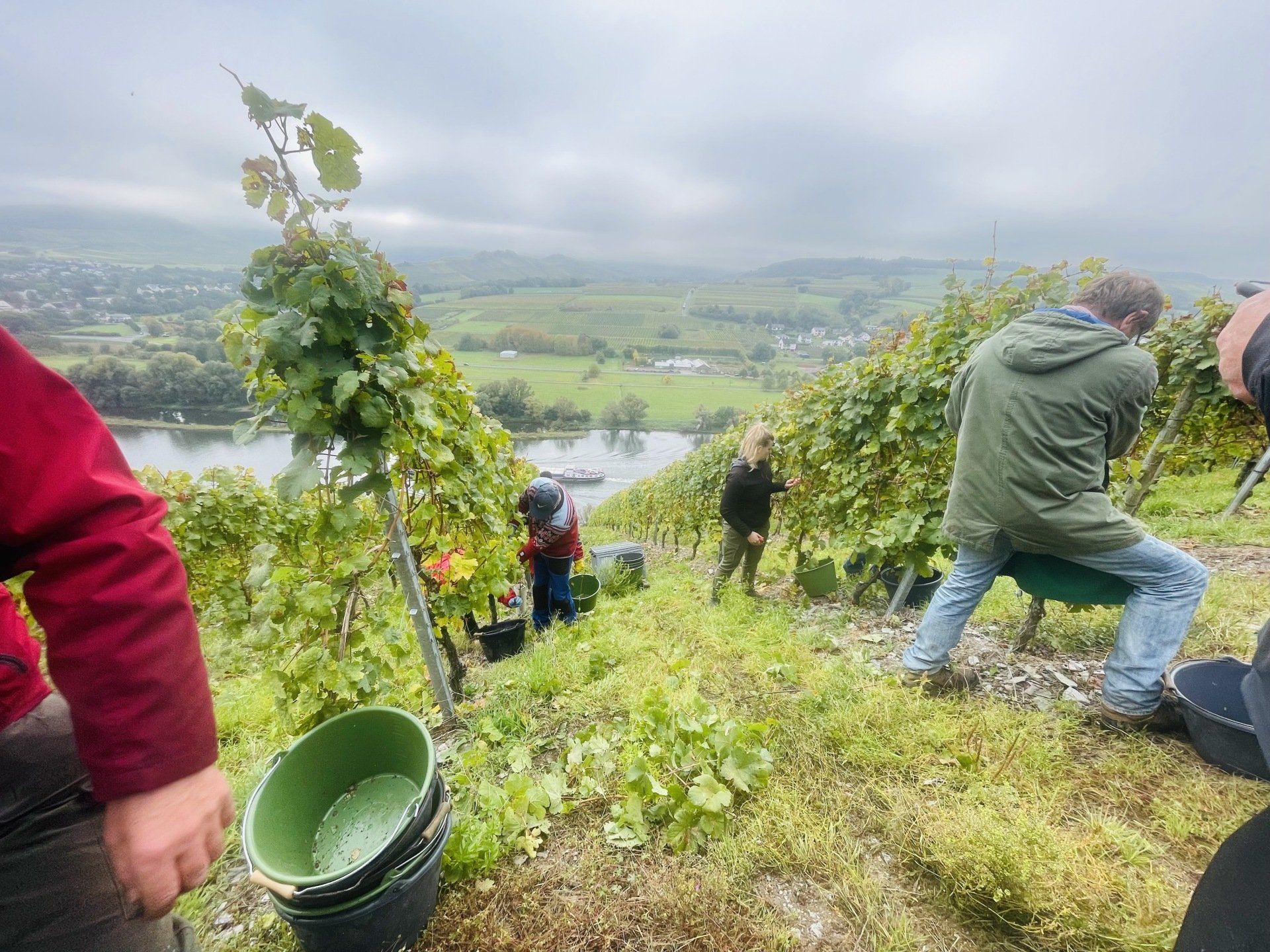 Durch die verschiedenen Arbeiten konnten wir den Sommer ohne allzu große Einbußen überstehen und so gesunden Weinbergen in der Entwicklung begleiten. Nach langem Wunsch nach besserem Wetter kam dann im Spätsommer die meteorologische Wende. Durch eine meist sonnige und trockene Wetterphase hatten die Reben bis zum Herbst perfekte Bedingungen und konnten so bis zur Weinlese noch eine erstaunliche Reife mit kerngesunden Trauben erreichen. Insbesondere die kühlen Nächte und warmen Tage trugen zur Bildung von Aromatik und Süße bei und sorgten zudem dafür, dass wir die Trauben noch sehr lange, bis zum jeweils besten Reifepunkt am Stock hängen lassen konnten. Unterm Strich sind wir daher sehr zufrieden mit der Qualität und gespannt auf die weitere Entwicklung des neuen Jahrgangs im Keller.