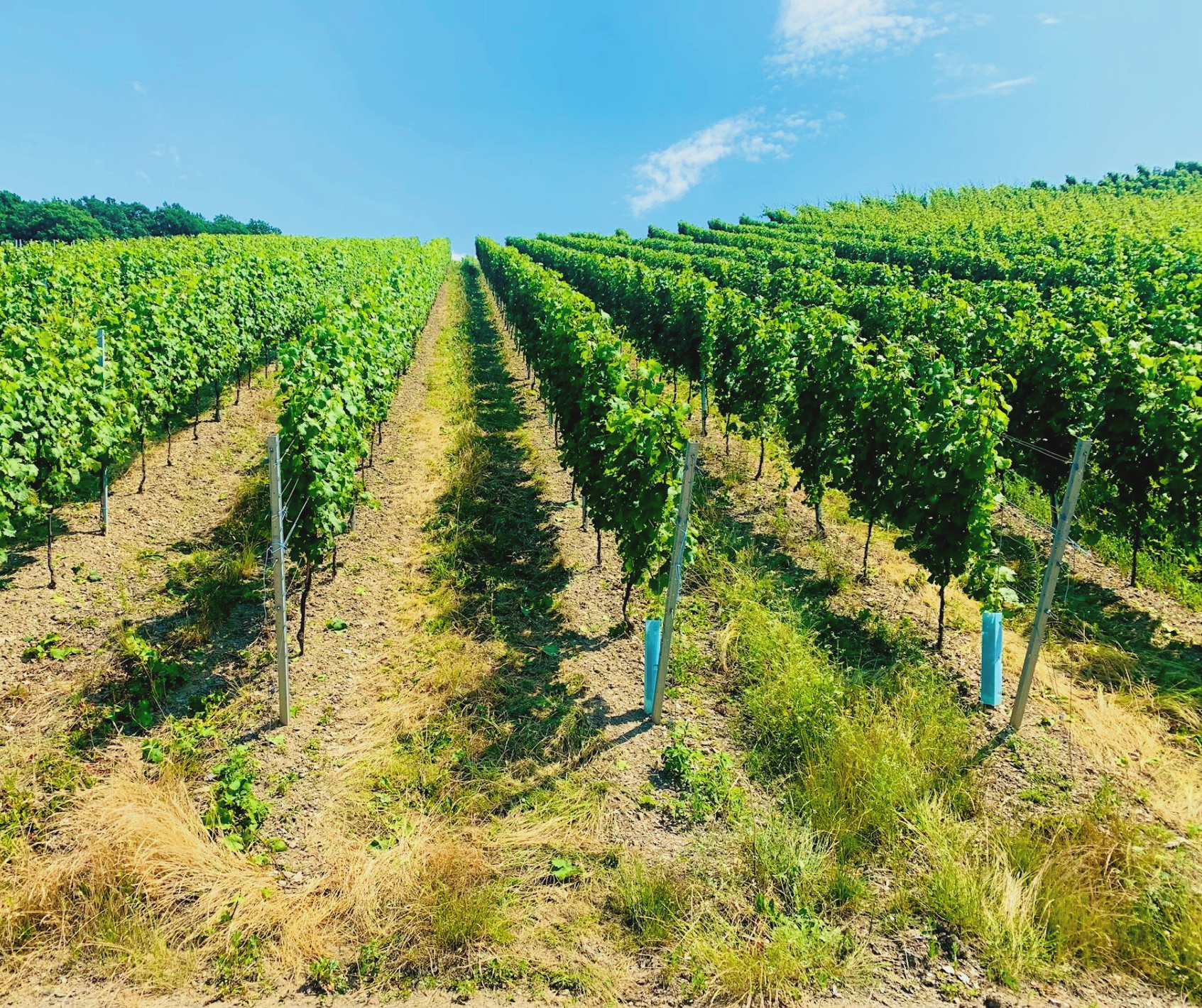 Die Laubwand steht und die Trauben entwickeln sich prächtig. Bisher überzeugt das Jahr eher durch Normalität als durch Auffälligkeiten. So ist die Entwicklung zwar immer noch zeitig dran, jedoch aktuell durch die kühlen Nächte und und lauwarmen Tagestemperaturen eher mit angezogener Handbremse als mit Turbo. Die Böden sind durch einige kräftige Regenschauer im Juni immernoch relativ feucht und wenn die Normalität anhält müsste es ja eh bald wieder regnen. Wir können uns über die bisherige Witterung also nicht beklagen und wenn jetzt noch Sonnenbrand und Hagel fern bleibt, wird es wirklich sehr gut normal.